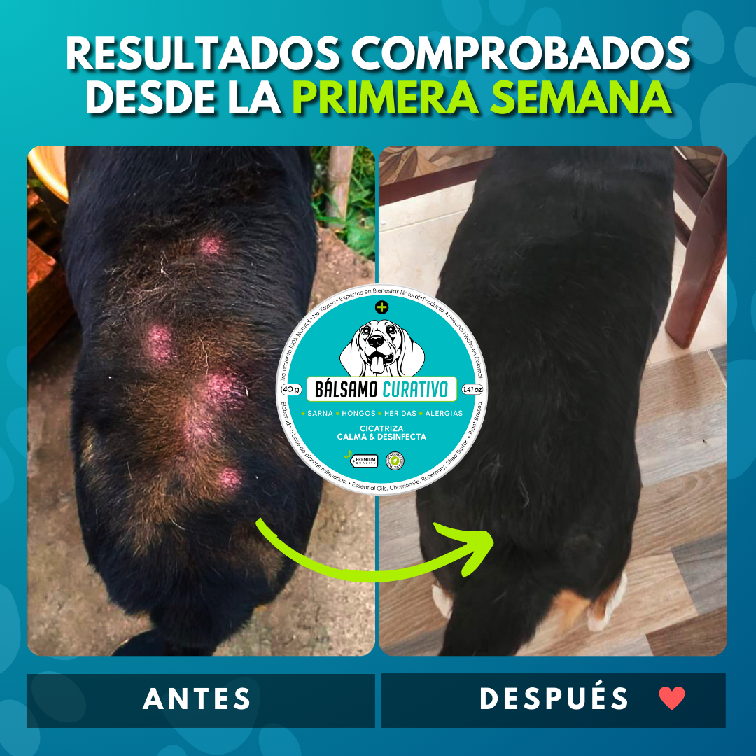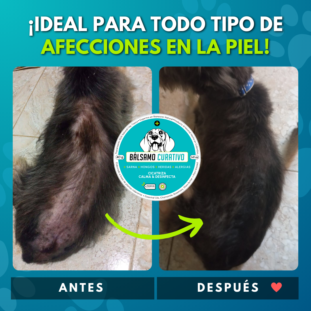 Nuestro bálsamo curativo ha mostrado resultados en todo tipo de afecciones en la piel. Es ideal para casos de dermatitis, hongos, alergias, sarna y ácaros.